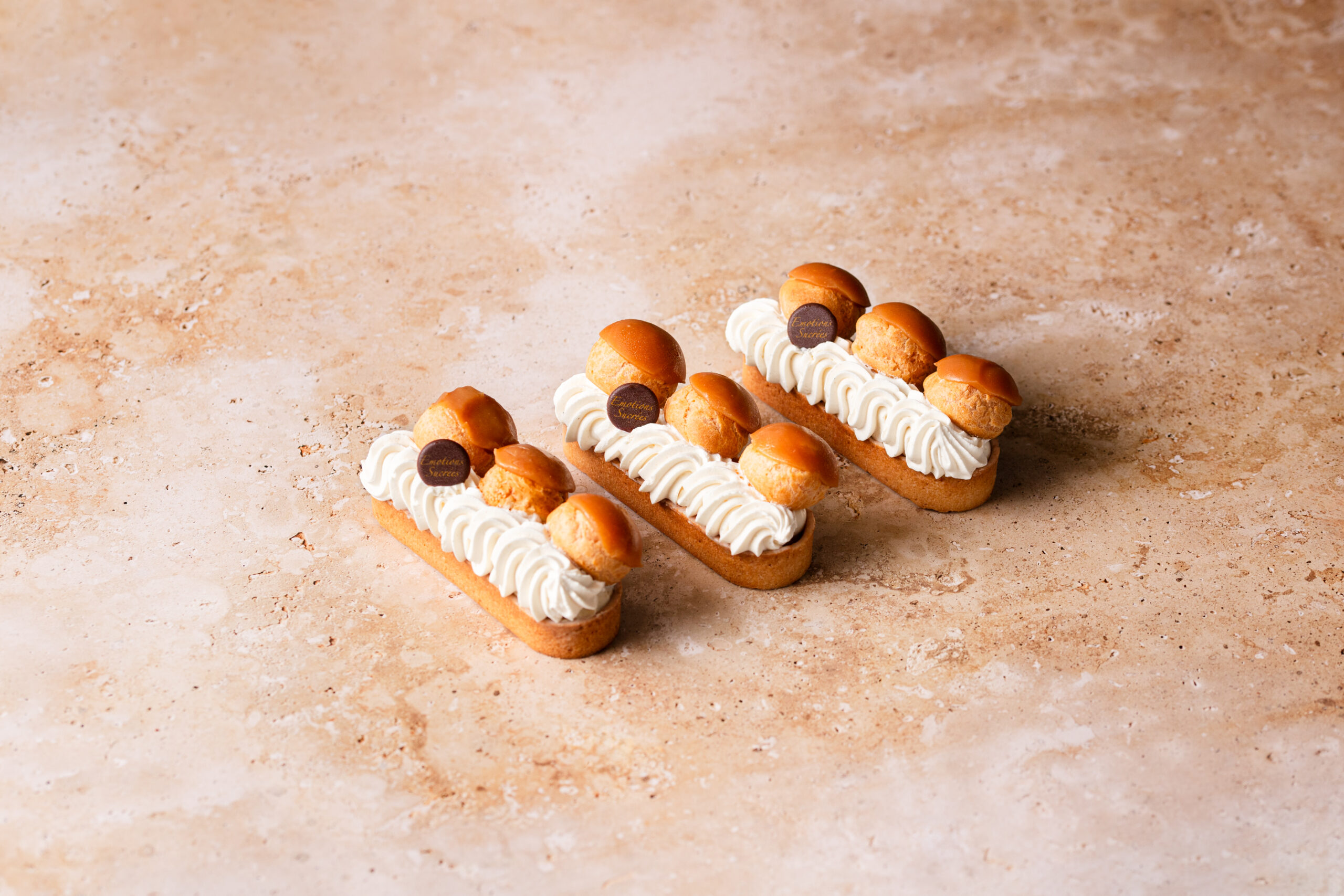 Sablé, caramel beurre demi-sel, biscuit amande, crème vanille et choux caramélisés… Un vrai délice !