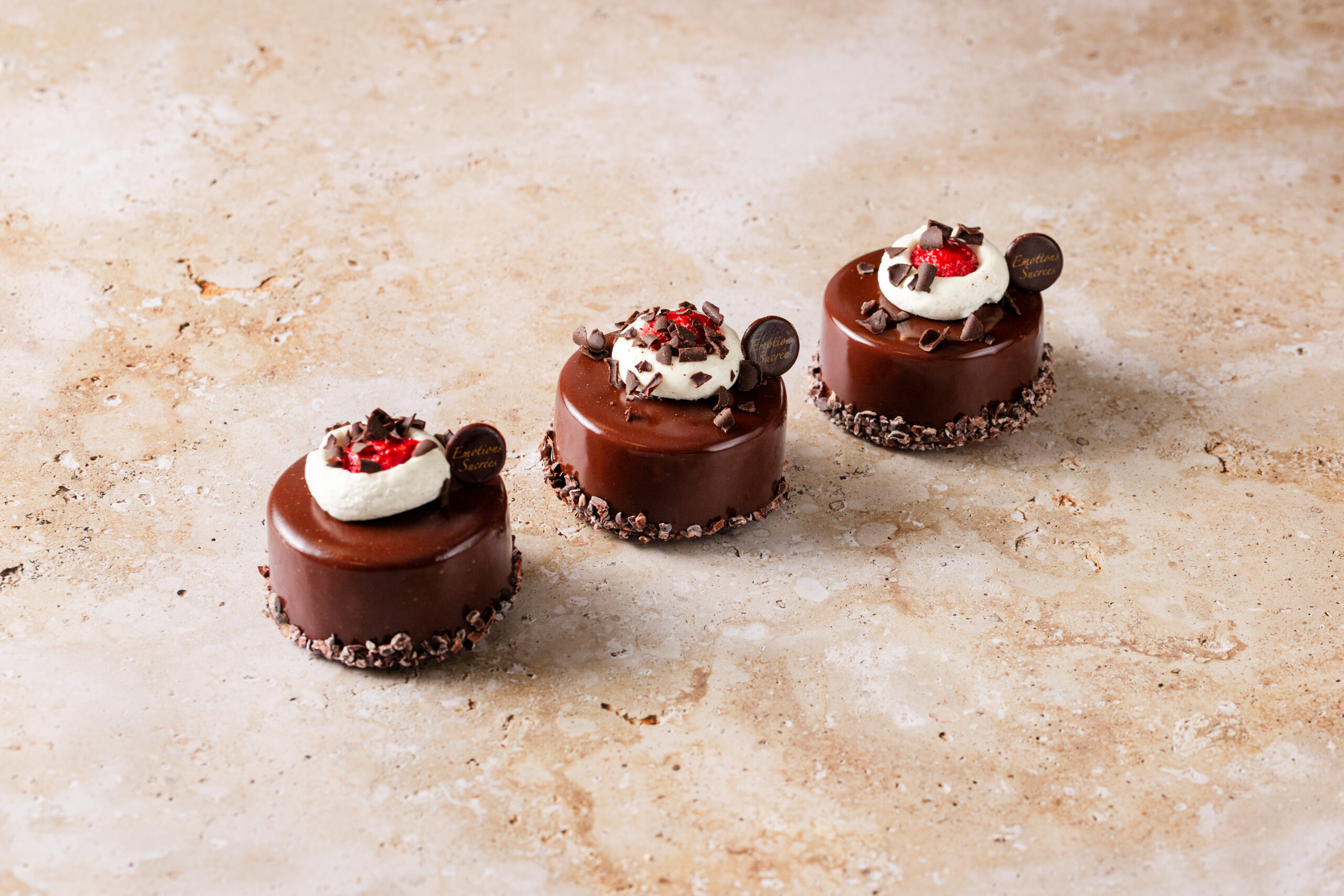 Une alliance élégante du chocolat noir Nyangbo et des fruits rouges, mêlant croustillant, biscuit sans farine, griottes et framboises en crémeux et compotée, le tout sublimé par une chantilly vanille légère et parfumée.