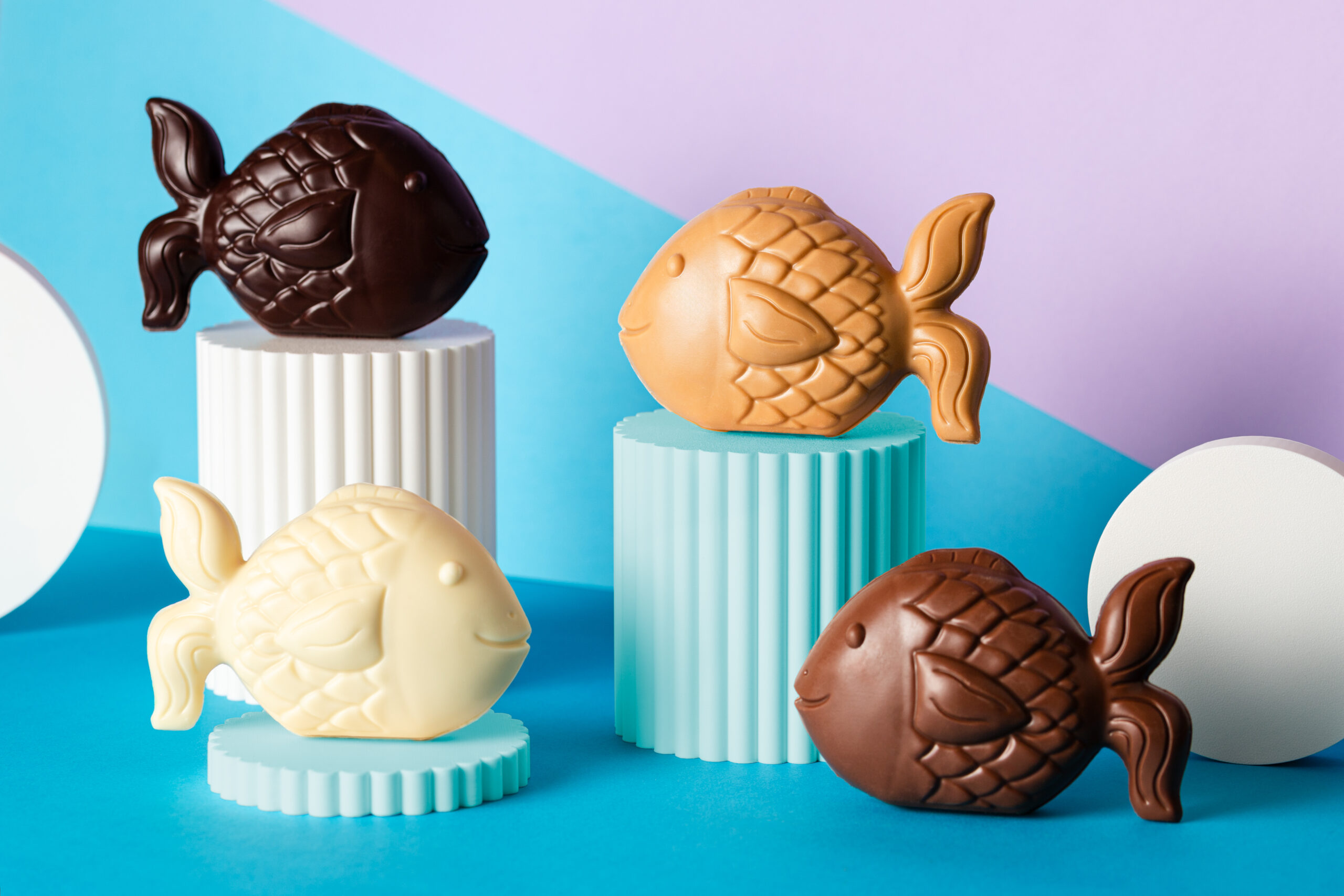 Poisson en chocolat de 100 g, entièrement moulé à la main dans notre laboratoire.
