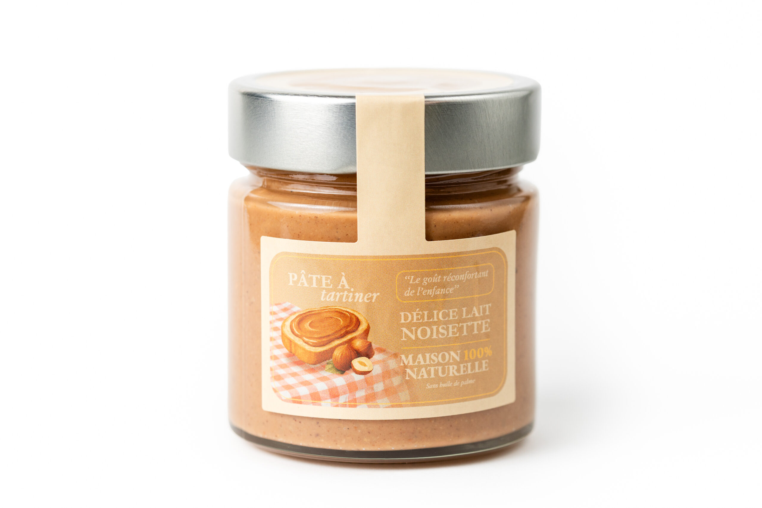 Une recette artisanale riche en noisettes (47,6 %), chocolat Jivara, sucre glace et vanille naturelle. Onctueuse et intensément gourmande
